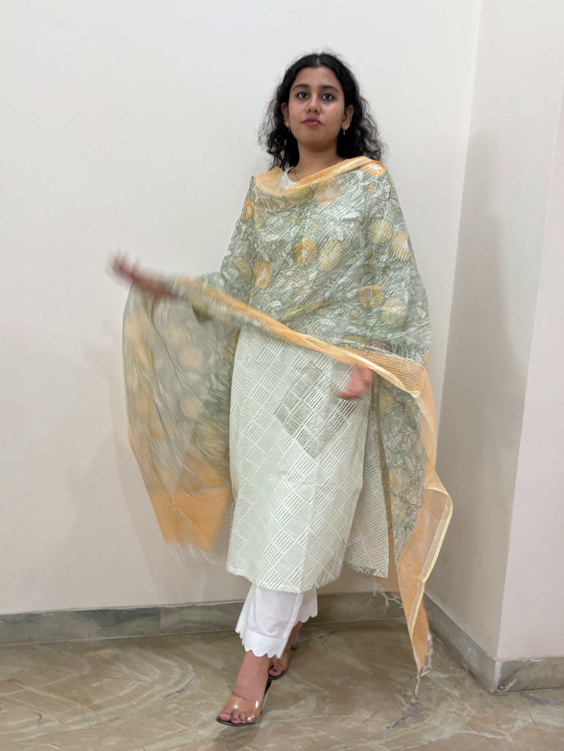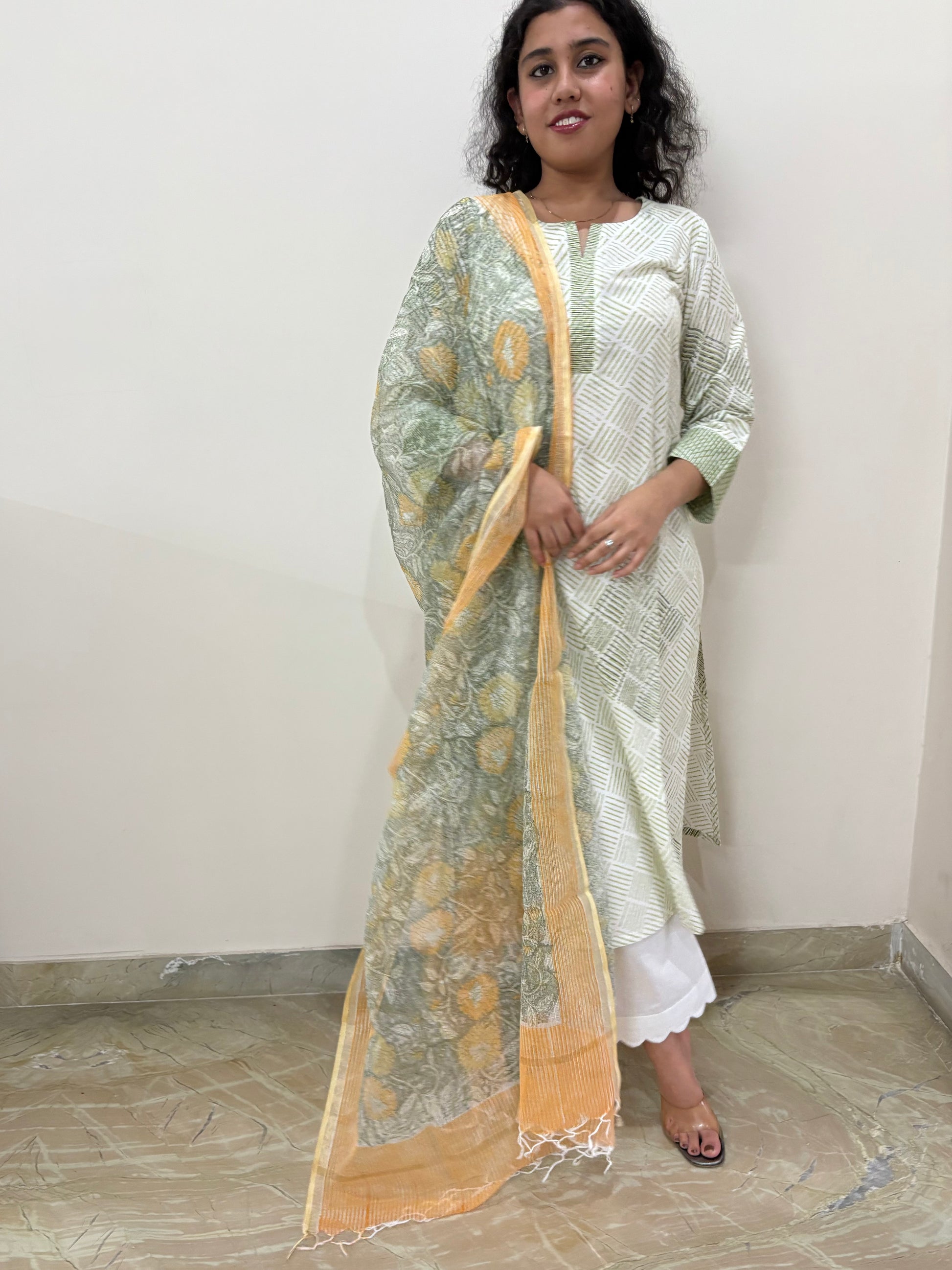 - 100% Cotton Kurta and Kota doria dupatta, Hand Block Printed