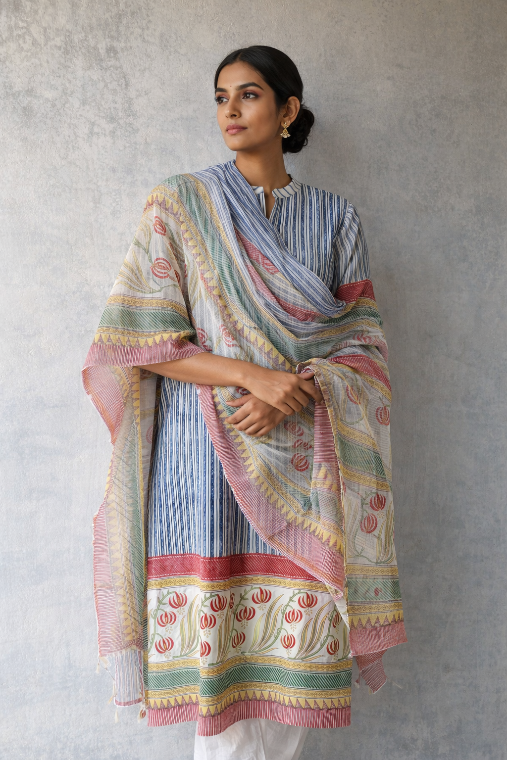 - 100% Cotton Kurta and Kota doria dupatta, Hand Block Printed