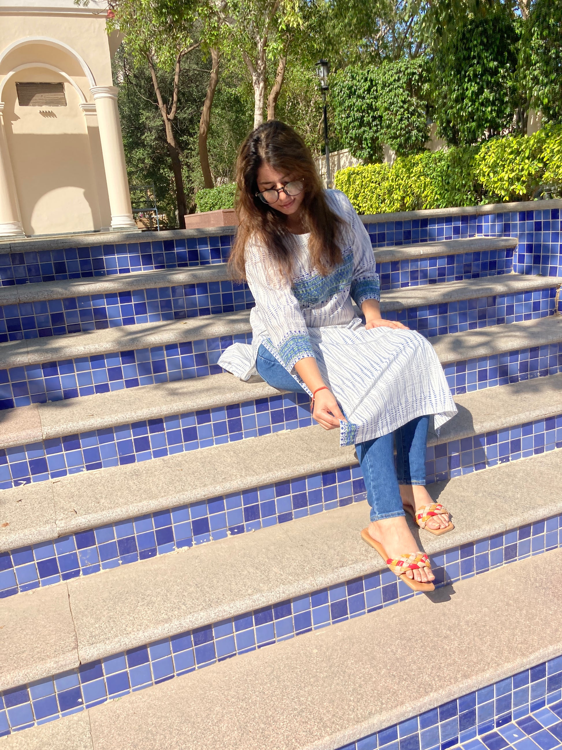 - 100% Cotton Kurta and Kota doria dupatta, Hand Block Printed